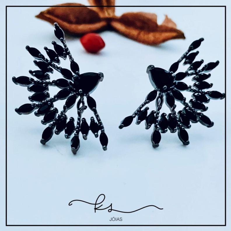 brinco ródio negro leque navetes cristal pretoConfira opiniões e avaliações de clientes!