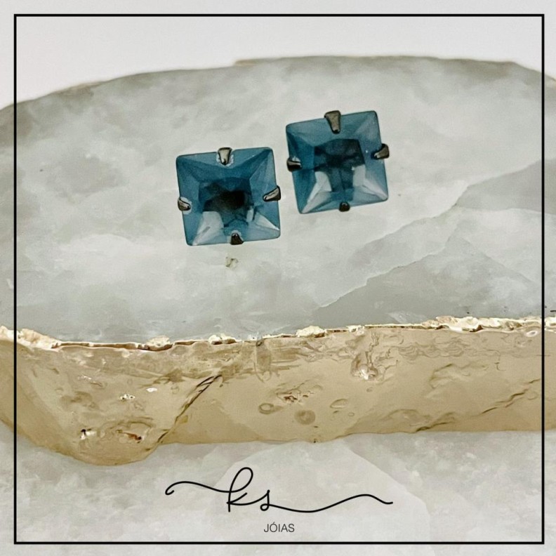 brinco ródio negro quadrado cristal azulConfira opiniões e avaliações de clientes!