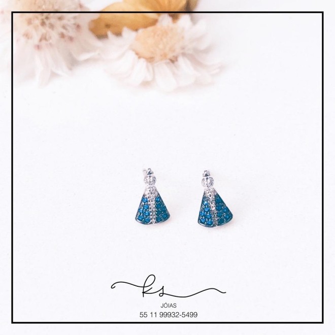 brinco rodio nossa senhora pequena cravejada zirconias azuisConfira opiniões e avaliações de clientes!