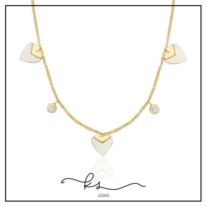 colar ouro 3 corações madrepérola penduradosConfira opiniões e avaliações de clientes!