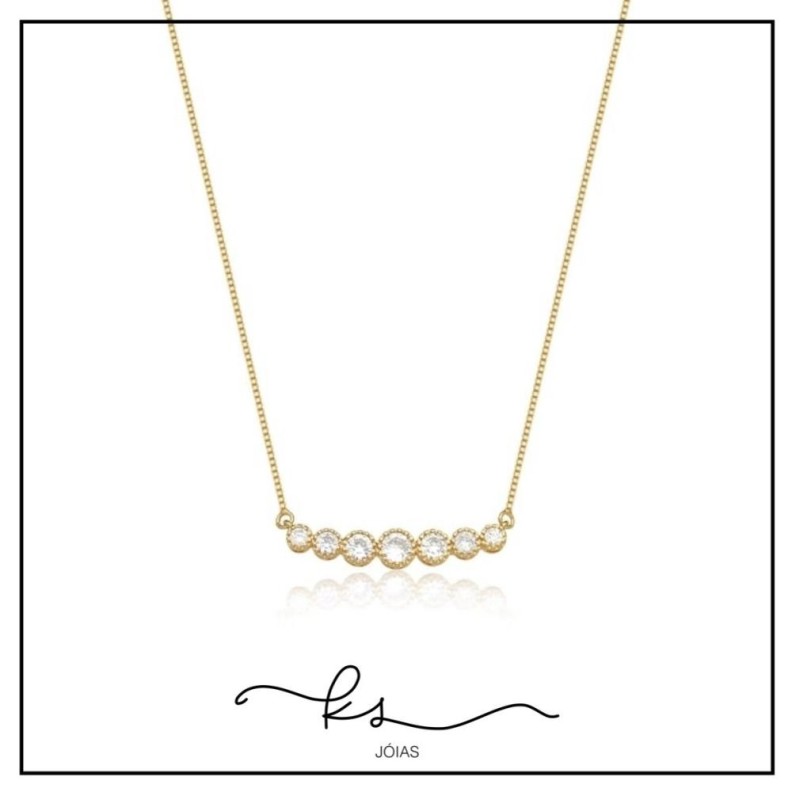 colar ouro arco com bolinhas cristalConfira opiniões e avaliações de clientes!