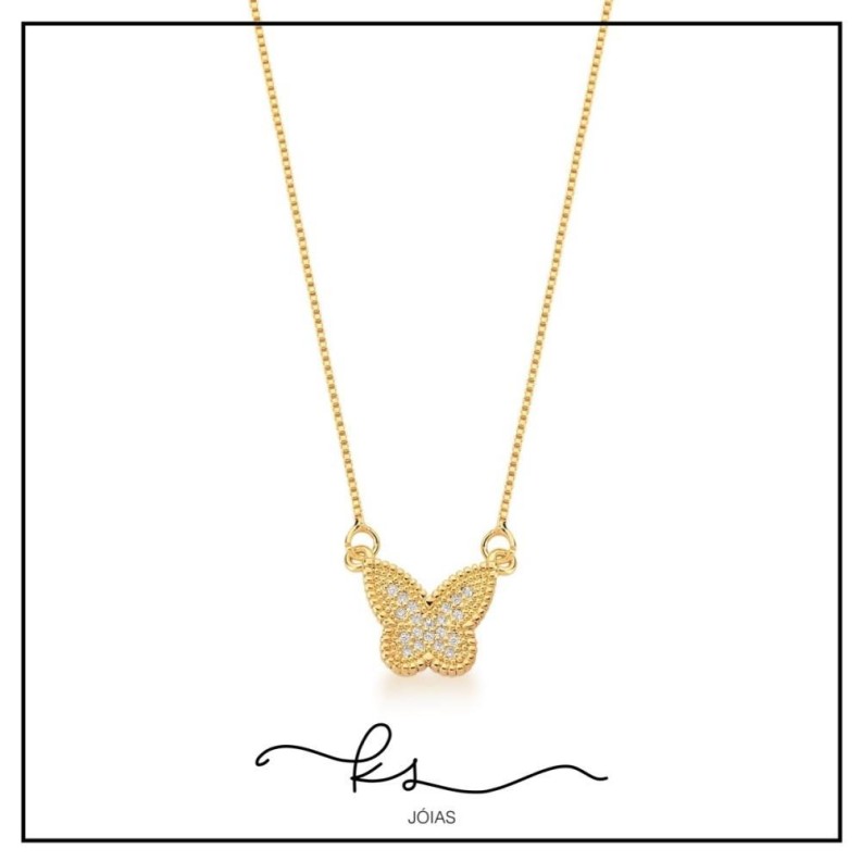 Colar ouro borboleta cravejada zircôniasConfira opiniões e avaliações de clientes!