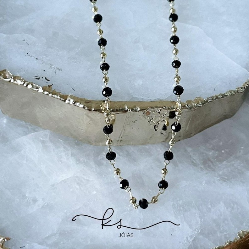 colar ouro choker cristais búlgaros pretosConfira opiniões e avaliações de clientes!