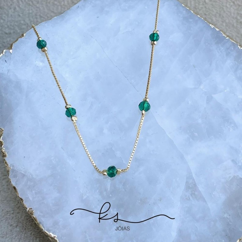 colar ouro choker cristais búlgaros verdeConfira opiniões e avaliações de clientes!