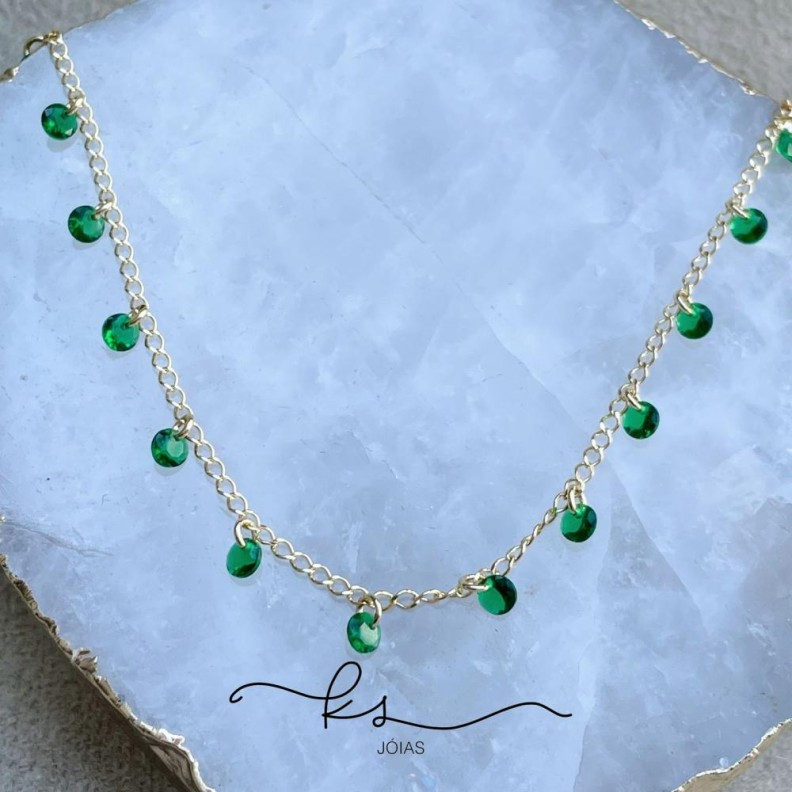 colar ouro choker cristais redondos verde penduradosConfira opiniões e avaliações de clientes!