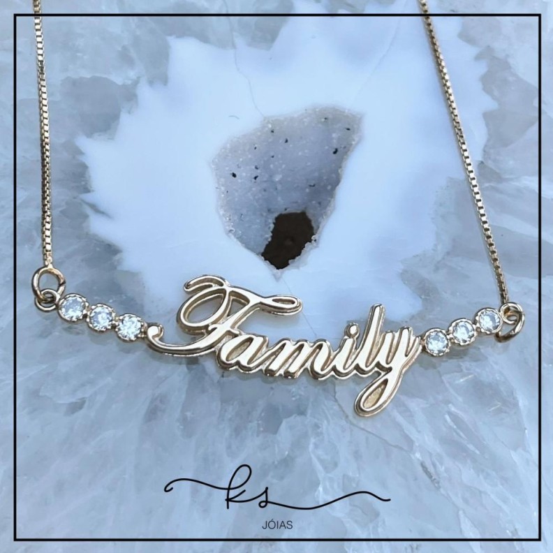 colar ouro escrita Family com 6 zircôniasConfira opiniões e avaliações de clientes!