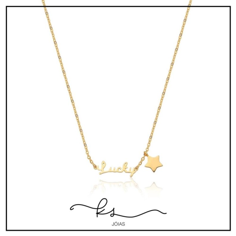 colar ouro escrita lucky e estrela penduradaConfira opiniões e avaliações de clientes!