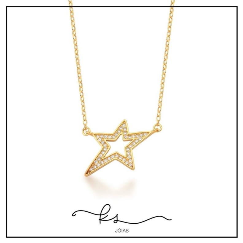 colar ouro estrela vazada cravejada zircôniasConfira opiniões e avaliações de clientes!