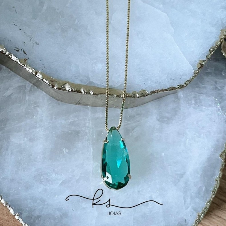 colar ouro gota alongada cristal verdeConfira opiniões e avaliações de clientes!