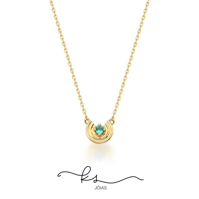 Colar ouro mandala com cristal verdeConfira opiniões e avaliações de clientes!