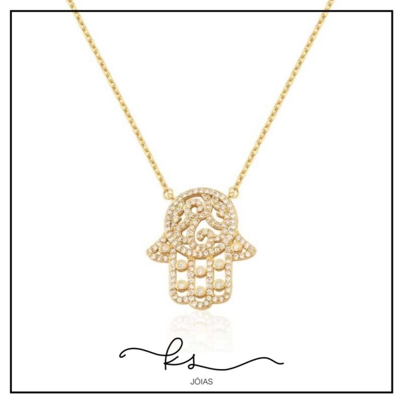 colar ouro mão de fátima cravejada zircôniasConfira opiniões e avaliações de clientes!