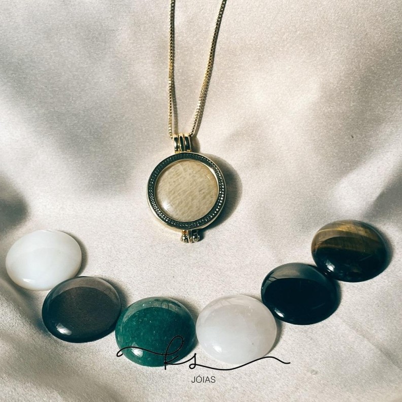 colar ouro relicário 7 pedras naturais (troca) - redondo nossa senhoraConfira opiniões e avaliações de clientes!