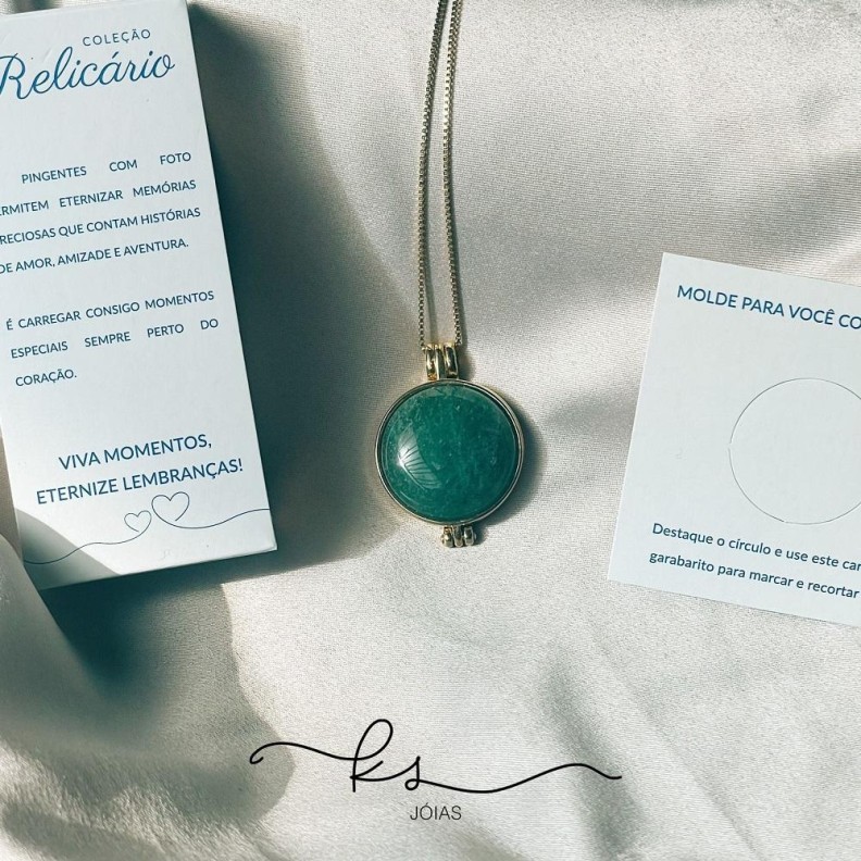 colar ouro relicário pedras naturais quartzo verdeConfira opiniões e avaliações de clientes!