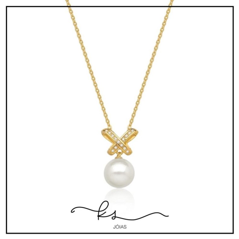 colar ouro X de zircônias com pérolaConfira opiniões e avaliações de clientes!