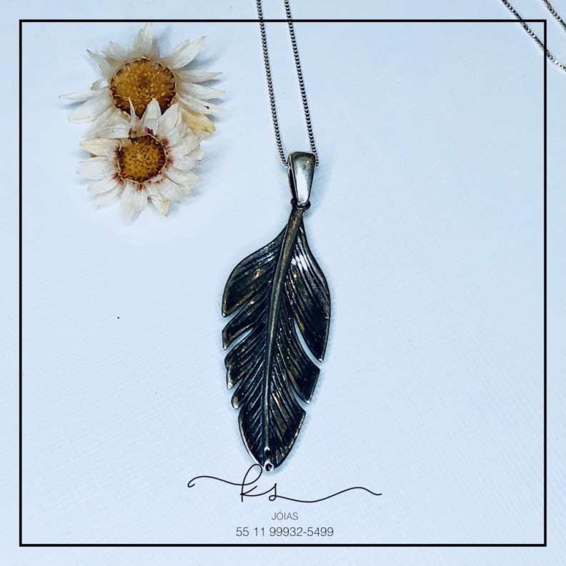 colar prata envelhecida longo pena grandeConfira opiniões e avaliações de clientes!
