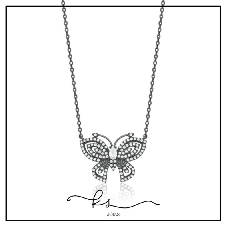 colar ródio negro borboleta cravejada zircôniasConfira opiniões e avaliações de clientes!