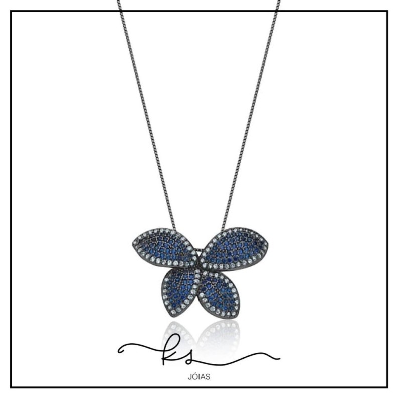 colar ródio negro borboleta cravejada zircônias azuisConfira opiniões e avaliações de clientes!