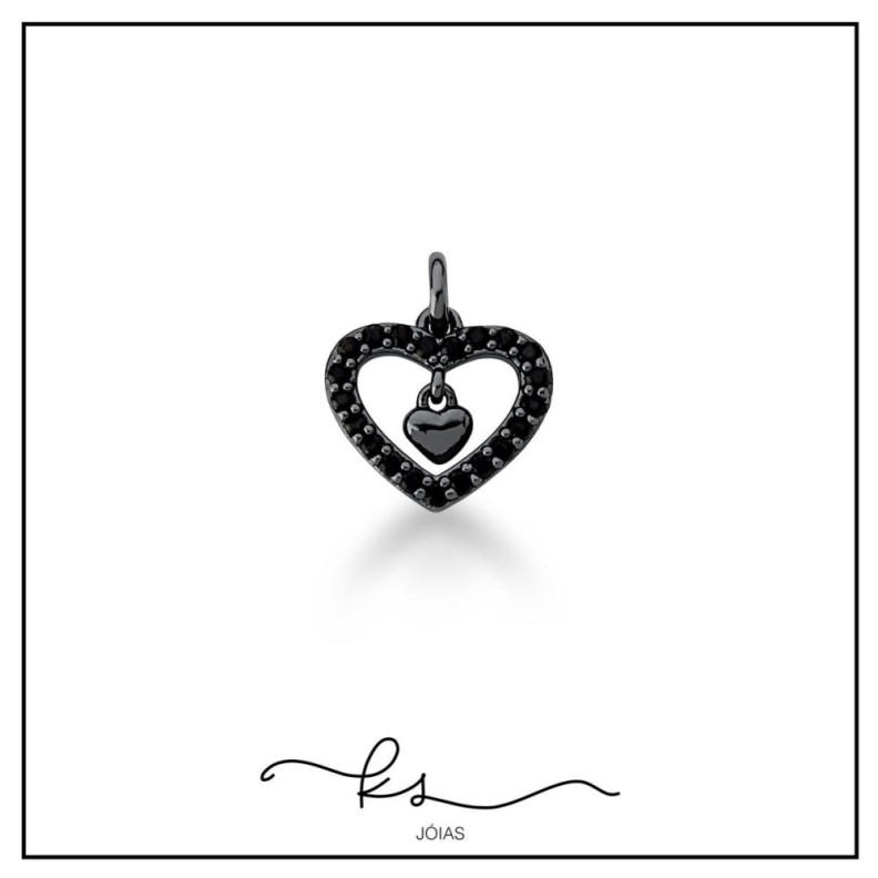 colar ródio negro coração vazado cravejado zircônias negras com pêndulo coração lisoConfira opiniões e avaliações de clientes!