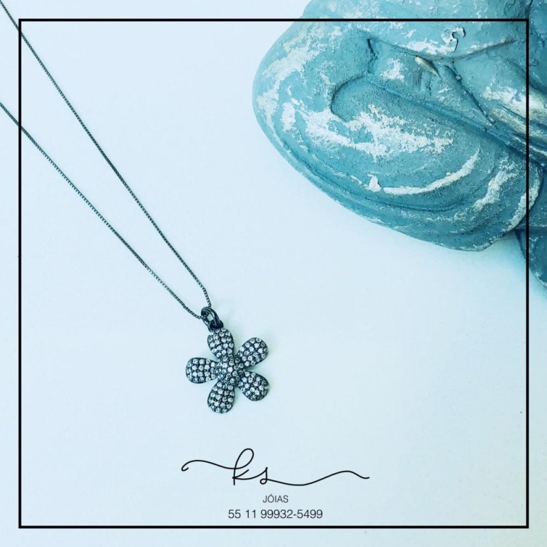 colar rodio negro flor cravejada zirconiasConfira opiniões e avaliações de clientes!