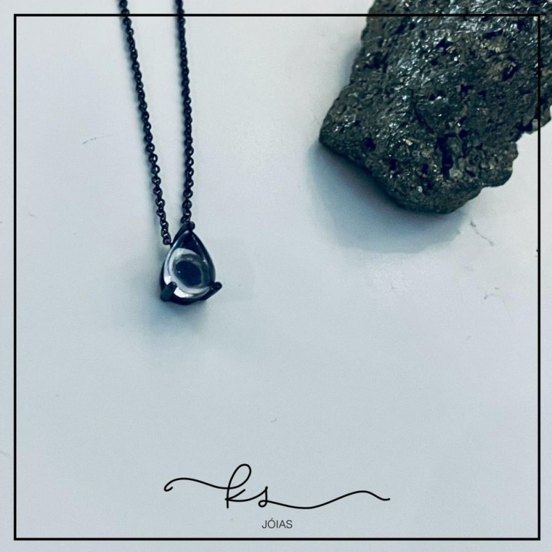 LANÇAMENTO ADICIONAR PRODUTO colar rodio negro gota contrária cinza com ponta zirconias negras R$ 79,90