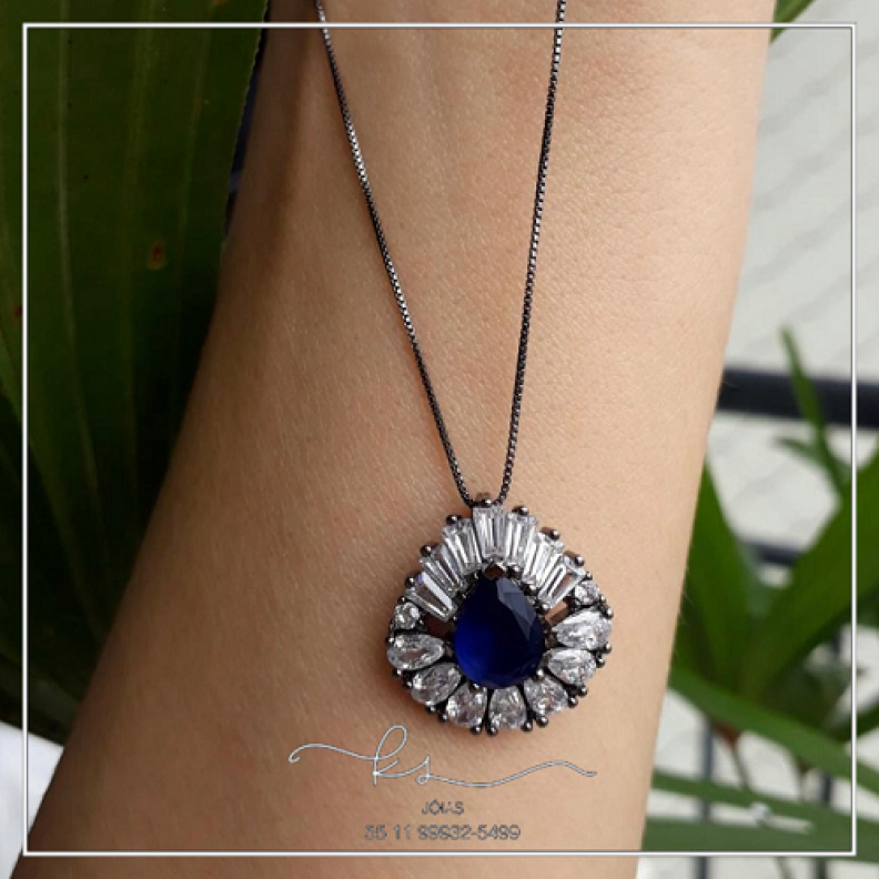 colar rodio negro gota marinho baguete cristaisConfira opiniões e avaliações de clientes!