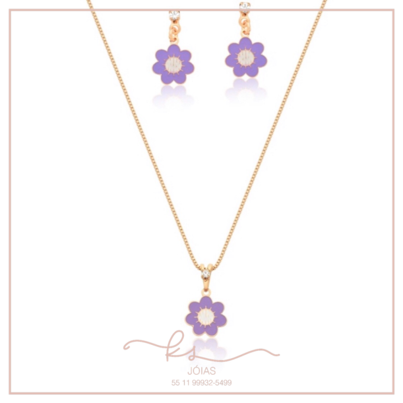 conjunto infantil brinco e colar flor roxaConfira opiniões e avaliações de clientes!