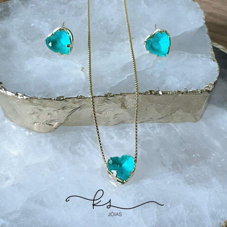 conjunto ouro coração cristal verdeConfira opiniões e avaliações de clientes!
