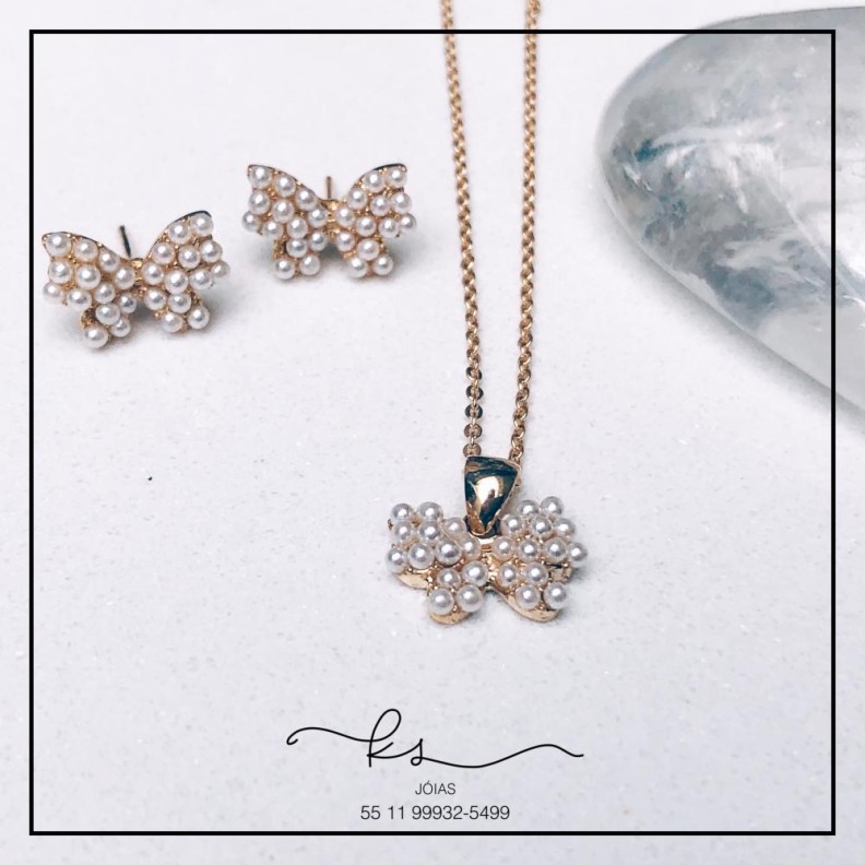 conjunto ouro laço todo cravejado perolasConfira opiniões e avaliações de clientes!
