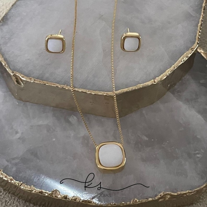 conjunto ouro pedras naturais madreperola gotaConfira opiniões e avaliações de clientes!