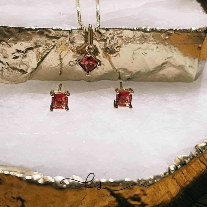 conjunto ouro quadradinho cristal rubiConfira opiniões e avaliações de clientes!