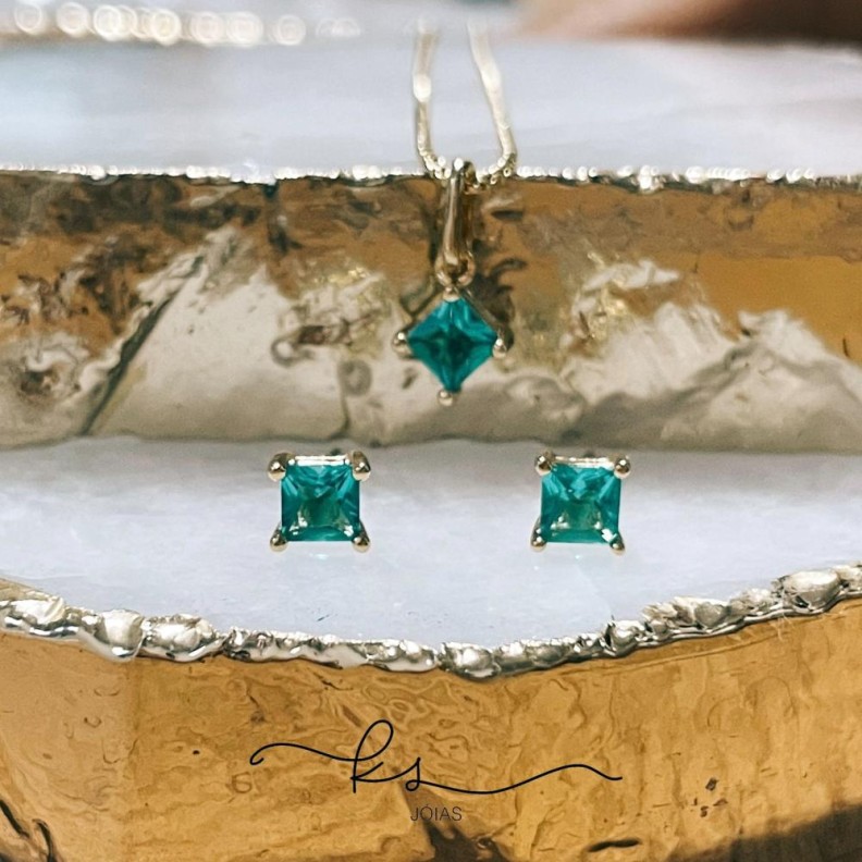 Conjunto ouro quadradinho cristal turmalinaConfira opiniões e avaliações de clientes!