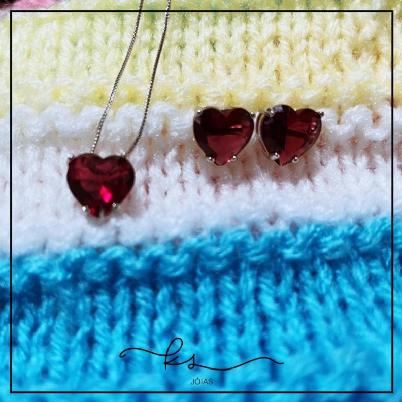 conjunto rodio coraçao cristal vermelhoConfira opiniões e avaliações de clientes!