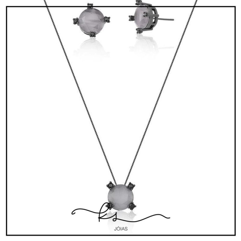 conjunto ródio negro cristal redondo cinzaConfira opiniões e avaliações de clientes!