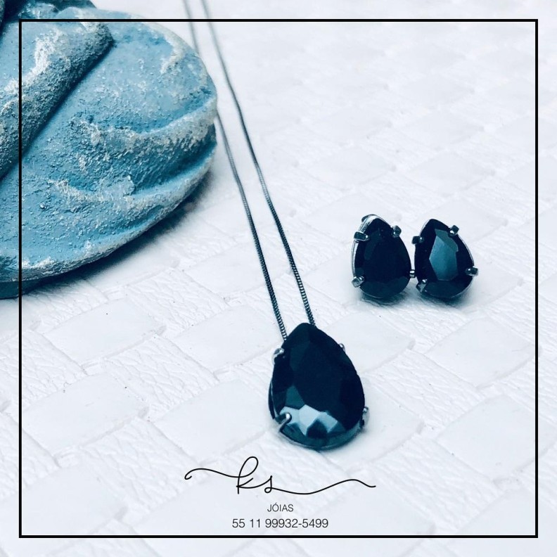 conjunto rodio negro gota cristal pretoConfira opiniões e avaliações de clientes!
