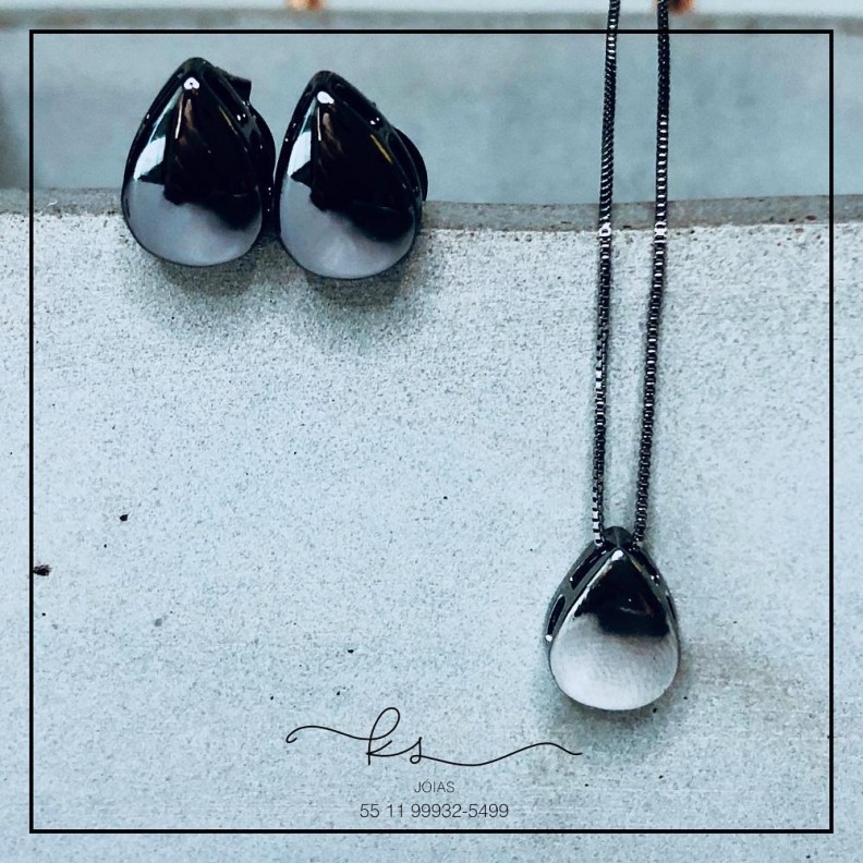 conjunto rodio negro gota lisaConfira opiniões e avaliações de clientes!