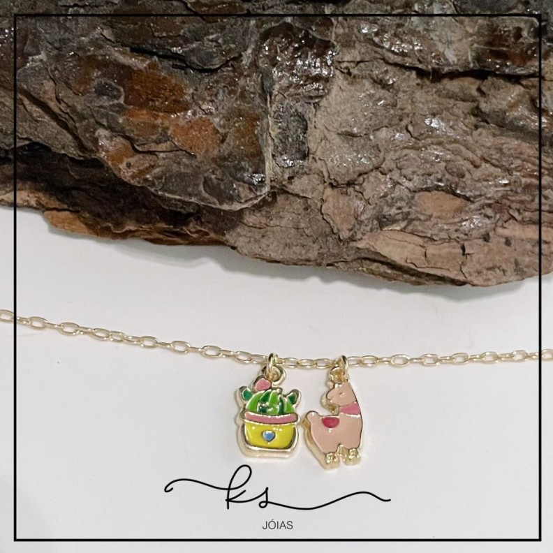 pulseira infantil ouro cacto + lhamaConfira opiniões e avaliações de clientes!
