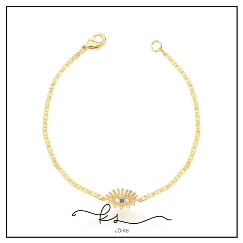 pulseira ouro olho grego meio zircônia azulConfira opiniões e avaliações de clientes!