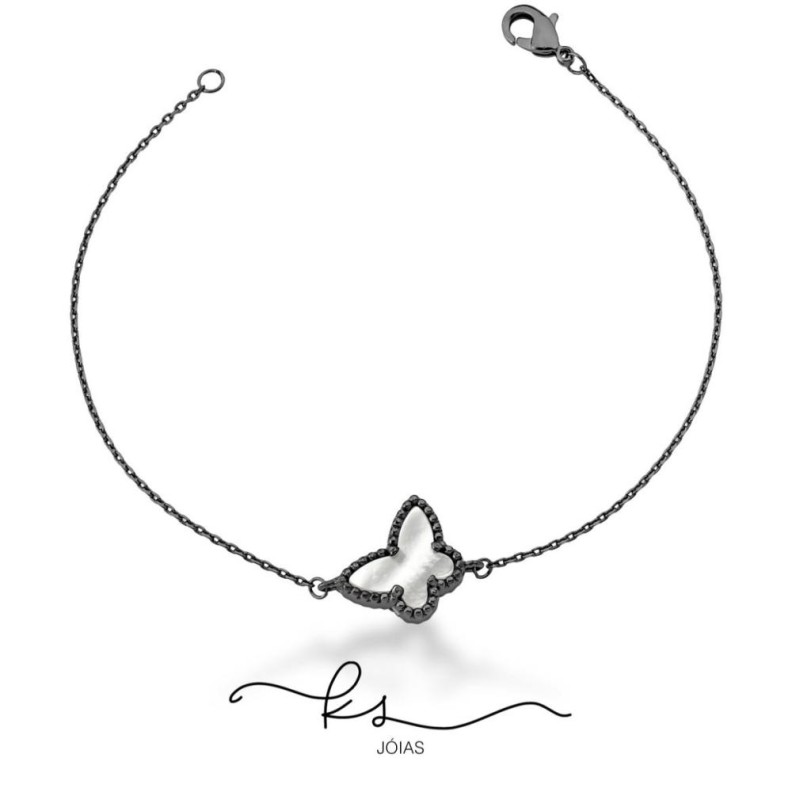 Pulseira ródio negro com borboleta madrepérolaConfira opiniões e avaliações de clientes!